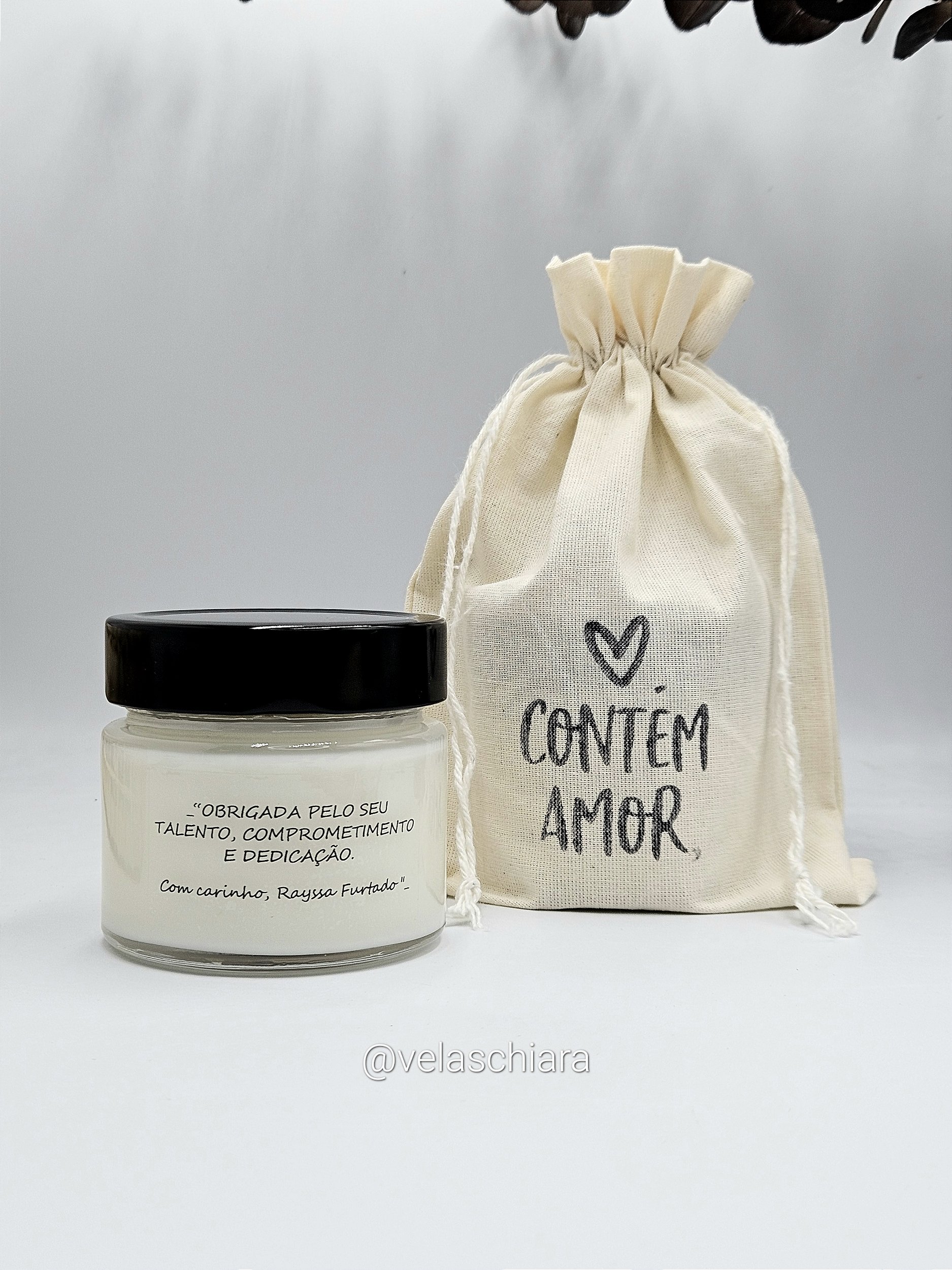 VELA VIDRO 140G + SAQUINHO DE ALGODÃO CRU