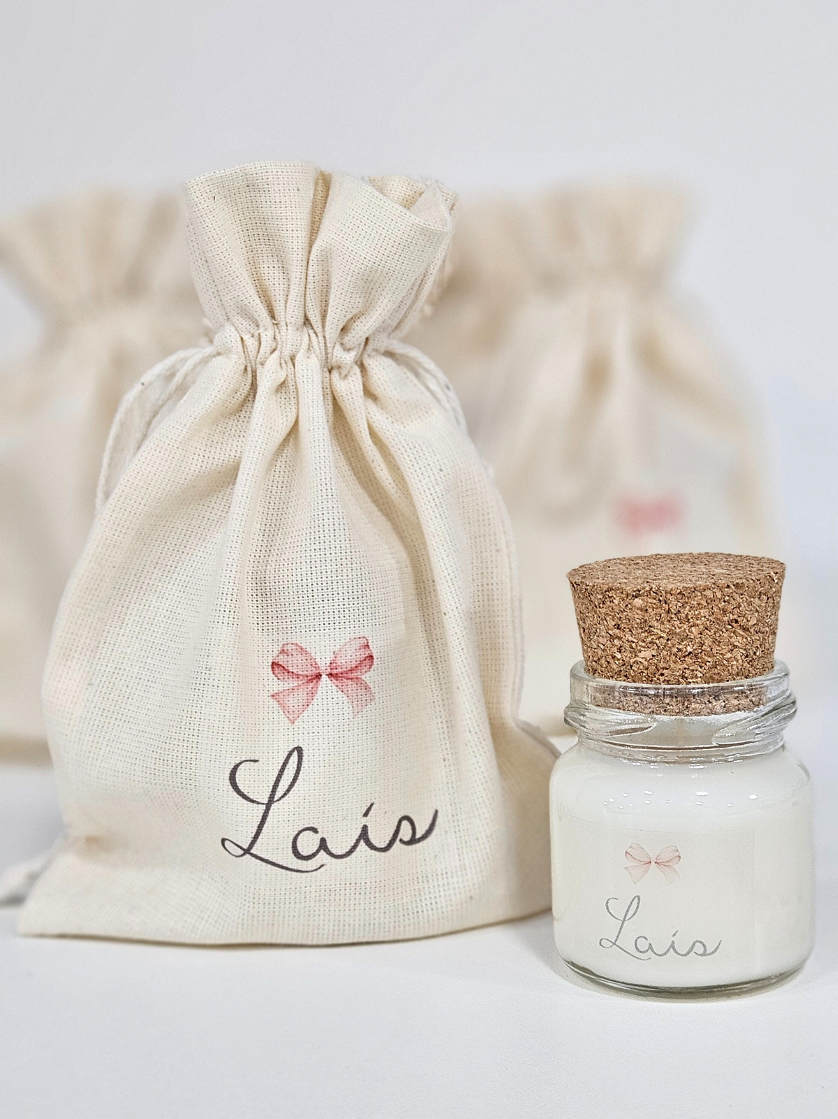 MINI VELA ROLHA 30G + SAQUINHO DE ALGODÃO CRU